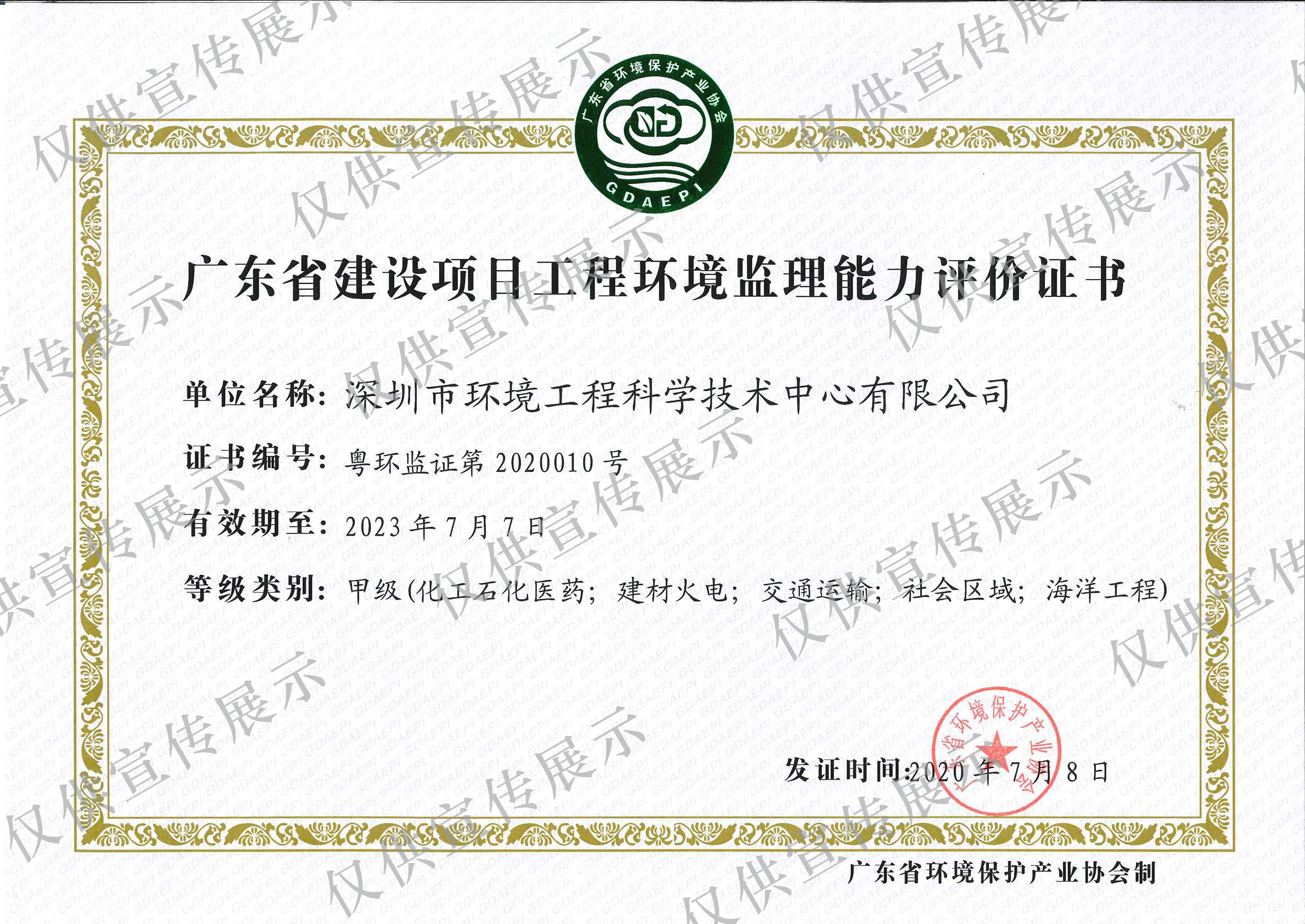 廣東省建設(shè)項(xiàng)目工程環(huán)境監(jiān)理能力評價證書